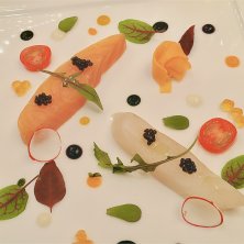 スコットランド産サーモン ミル貝 クリーム仕立てのカリフラワー キャビア添え♪ 昨日の初ディナーショーでのお食事をアップしました(^o^) トップスターに早く会いたくてお食事にはあまり期待していなかったのですが、サーモンのとろける驚いしちゃいましたぁ(^_^)