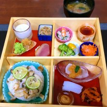 笠原流懐石御膳 玉葱のすり流し、しらたき山椒煮、大葉胡麻風味のポテトサラダ、合鴨スモーク、銀鮭昆布〆焼き アボカドおろし、蒸し鶏と春菊の胡麻和え、田楽かぼちゃ味噌、ブロッコリー土佐煮、人参と大根の柑橘系なます、島将プリン 黒蜜風味、かんぱちのたたき チリ酢おろしとニラのピューレ、サーモンの塩昆布和え、アオリイカ あん肝醤油とともに、焼ききのこ御飯 すだち dancyuフェスティバルにて、東京・恵比寿の賛否両論さんの出店。
