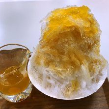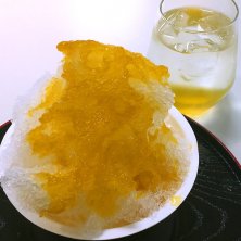 かき氷 乃し梅×シナカル氷 WAGASHI ~和菓子老舗 若き匠たちの挑戦~のワカタク茶屋にて、山形の乃し梅本舗 佐藤屋×高岡の引網香月堂さんがコラボ出店。