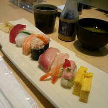 本日のランチ 朝顔(ランチ) 699円♪ このお値段で甘エビ(生)と鰤がつくのはお得☆、本日のラスいちが私でしたヽ(´▽`)/