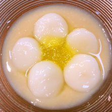 酒粕冷し白玉(生姜ジュレ添え) WAGASHI ~和菓子老舗 若き匠たちの挑戦~のワカタク茶屋にて、滋賀・愛荘町のしろ平本舗さんの出店。