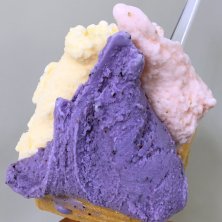 ジェラートアイスクリーム トリプル(3種盛) ブルーベリー、さくらもち、クリームチーズ 大北海道展にて、弟子屈町のくりーむ童話さんの出店。