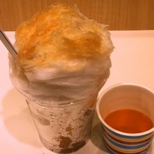 かき氷 シナモンとカルダモンのかき氷 WAGASHI ~和菓子老舗 若き匠たちの挑戦~のワカタク茶屋にて、高岡の引網香月堂さんの出店。