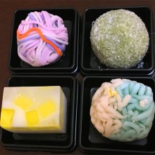 こよみ菓子「七夕」 結び糸、笹餅、星あい、明けの雨 WAGASHI~和菓子老舗 若き匠たちの挑戦~にて、高岡の引網香月堂さんの出店。