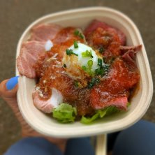 本日のスタグルはローストビーフとローストポークのお肉合盛り丼