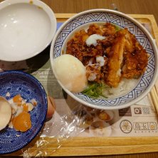 鳥のてりやき丼。温玉のせ。 温玉自分で剥いたり、てりやき丼ときいて鳥が揚げてあるとは思わなかったりとか、いろいろあったけど。 まあ、てりやきの甘い味がしっとりで美味しかったです。