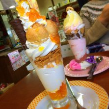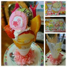 *宮崎マンゴーだらけパフェ 果物屋さんに併設されているフルーツパーラー。 いつ来ても新しいメニューが色々あって楽しい😍 マンゴーがとっても甘くておいしいです♥