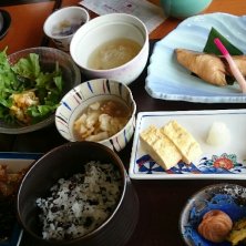 おはようさん😃 朝のモーニング炊き立てのご飯になめこ味噌汁の和食です…普段ご飯🍚を少なく食べるわたしゃですが炊き立てで美味すぎる😁💓食べ過ぎた朝食‼️ これから…本州…神戸に戻ります🚗✈️