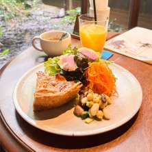 ・ラズベリー入り生チョコレートタルト、ラズベリームース添え ・Hコーヒー 京都市内において愛車を眺めながらマターリカフェタイム過ごせる所は貴重です!重宝します。 濃厚チョコタルトにベリーの爽やかな酸味が合わさり、コーヒーのコクと酸味がよくマッチします。うん、美味しい。 ナチュラル系の内装で多数のしかも女性スタッフばかりのオープンキッチンスタイルでほっこりと癒されてます。 雨の中きた甲斐ありました(笑)