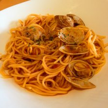 本日のパスタ(ボンゴレロッソ)スープ付き¥490