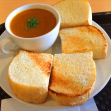 調べ物があるので、作業しながらランチ。 おすすめパスタセット カニのトマトクリーム ¥500
