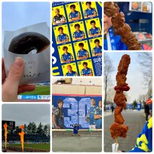 モツ煮込みうどん😋寒いからあったまるよ〜今日はキッズ限定☆ネックウォーマーが貰えるというので、張り切って早めにGO!無事ゲットできてご満悦でした😆推しの選手のうちわも作って気合い十分…そして勝った〜!!プレイオフかかってた今治にゴリゴリ攻められてたけど、数少ないチャンスをものにできた👍2試合引き分け続いた後だから余計に勝ちがしみる〜残り2試合も頑張って!ジュビロ磐田戦、行っちゃおうかしらw