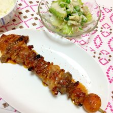 阪急うめだ地下のお惣菜 やきとり鳥芳の「オールスターズ」 RF1の「アボカドとハーブチキンのグリーンサラダ」 阪急のお惣菜の続きです。RF1のサラダは大好きでよく食べてますが、鳥芳は初めて。オールスターズという、販売してる焼き鳥全部を1つの串につなげたものが衝撃的すぎて買いました。いちばん左は「いかだ」という、手羽先をいかだのような形にしたものです。おいしかったです♡この焼き鳥のおかげで、ご飯控えめにしてましたが結局お代りしちゃいました(^^)