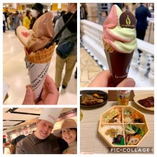 阪急百貨店うめだ本店。 バレンタインチョコレート博覧会2020 に行ってきました🍫😝💕 ピエールマルコリーニのソフトクリーム(左) 濃厚なのに後味さっぱりでめちゃくちゃ美味しい❤ ショコラティエパレドオール(右) 濃いカカオ。これもなかなか美味しい❤ ノイハウスのショコラティエ・ディビットさんと写真♪ サインもいただきました。 とっても優しくて笑顔の素敵な方でした❤ 夜ごはんはB2で買ったお弁当とお魚🐟