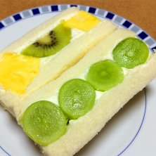 阪急梅田に期間限定出店している、奈良 桜井「パティスリー・バナニエ」 『フルーツ屋さんのサンドイッチ シャインマスカット324円』 『フルーツ屋さんのサンドイッチ パイナップル・グリーンキウイ250円』 めっちゃ大きなフルーツがたっぷりサンドされています! フルーツ甘くて美味しい♪