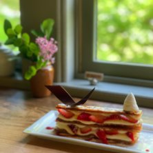 クローチェからのジークフリーダ 山沿いにひっそりと佇むカフェ♪ 森カフェへ すごい久しぶりに友達とドライブ旅 てました。 心も身体も癒されました♡ 平日だったので、ゆっくり流れる時間を 楽しんで来ました。 こちらでいただいた🍓いちごのミルフィーユも そろそろ終わり♪ ラッキーにも食べる事ができました。