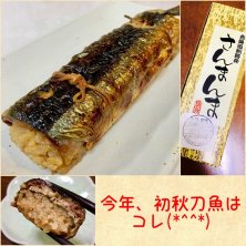今年は、秋刀魚の値段がかなり高いですね(^^;; ということで、初秋刀魚をいただきました♬ でも…新宿の小田急百貨店でやってる 北海道物産展で購入です。 餅米に秋刀魚をのせ、焼き上げてあります♬ (焼き鯖寿司のような感覚です。) 餅米なので、見た目以上に ボリュームがありシッカリした食感です(*^^*) 美味しかったです、ご馳走様でした♬(*´∀`)♪