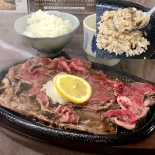 現在開催中 (5/29〜6/3)の 「長崎物産展」に再び! イートインコーナーで 佐世保発祥で名物の 「佐世保レモンステーキ」¥1296を (ライス・スープ付) ー 今回は九十九島の「海遊」が出店 食欲そそるレモン風味の 甘口ソースは絶品! 最後 ご飯を少し残しておき 皿に残ったソースを絡めて食べるのが おススメらしく実際試しに、さすが旨! 丁度 ネットで見た 佐世保の 元祖レモンステーキの店 「れすとらん門」に 行きたいと思っていたところ 佐世保に行かなくても 食べれるチャンスと早速!