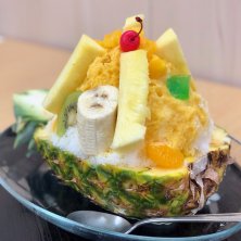 インパクト大! パイナップルの器が珍しい 鹿児島「天文館むじゃき」の 特製白熊かき氷! 小田急百貨店新宿店で開催中 「明治維新150周年記念 鹿児島物産展」( 5/23〜28 ) に出店 鹿児島の夏の風物詩 「天文館 むじゃき」 のかき氷から この催事限定 「トロピカル白熊」¥1296を パイナップルを器にした氷の上に パイナップル、マンゴー キウイ、バナナ等 文字通りトロピカル感満載 見た目も楽しめる演出! 食べ応えのあるビッグサイズ! 同時開催 「NHK 西郷(せご)どん展」
