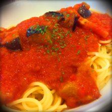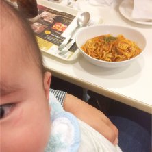 病院後、ヨメ合流してカフェで一服。ナスとベーコンのトマトパスタ。食欲ないムスメも食べてくれています。