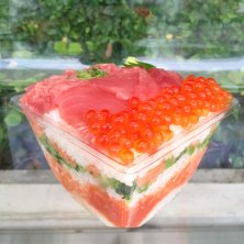 「贅沢ミルフィーユ」 ミルフィーユといっても、お菓子じゃありません(笑) 海鮮です! 上段には、イクラや数の子、かに、エビなどがたっぷりと乗っています。 さらに、ご飯とご飯の間には、肉厚のサーモンや明太子などが挟み込まれています。 東京駅大丸地下にある創作鮨処 「タキモト」 ちょっと値段高めですが、満足度はそれ以上 この「贅沢ミルフィーユ」は、以前テレビで取り上げられたこともあるそうです。