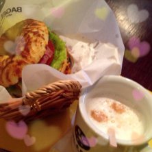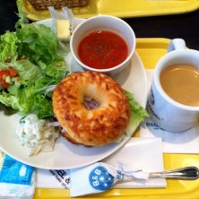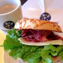 朝ジムで汗を流してランチ(^^)ここのベーグル…駅の乗り換えで買った事は有ったけれど、カフェに入ったのは初めて!休日メニューのダブルパストラミ(^^)