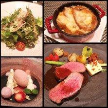 普段はスイーツビュッフェで人気のこちら 今は全部中止、ディナーが出されてます ◎フレッシュサラダ ◎フレンチオニオングラタンスープ、グリュイエールチーズ ◎オーストラリア産ビーフサーロイン 椎茸のデュクセル、グリルアスパラガス、ベーコンカスタード、 キャラメリゼペコロス、ミソオランデーズ ◎ストロベリーソルベ&エルダーフラワーマスカルポーネ、レッドカラント クランチ ここは、座席配列が上手く出来てて、他のお客さんと顔を合わせません 早くホテルレストランが通常営業に戻って欲しい