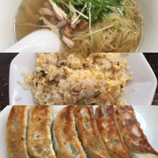 浜松です。駅前のラーメン屋の「好麺」さんで、鶏塩ラーメンとミニチャーハンと餃子をいただきました。餃子は、残念ながら浜松餃子の程はなしていませんでした。