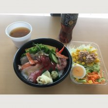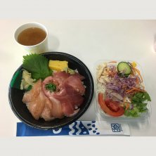 お昼ごはん 台風大雨の影響か、ローソンにほとんどお弁当ありましぇん。並びの海鮮三崎港で 三色マグロ丼 調達。サラダはローソン蒸し鶏彩りサラダ マグロ丼とっても美味しかった。