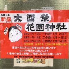 大酉祭 二の酉 今年は⛩の下で検温とアルコール消毒😅 そして、出店の屋台、即席の居酒屋、見せもの小屋も無いお祭り😅💦 熊手は親切だった「江戸熊手職人 中村屋」さんで購入😁 安い個人客なのに手締めまでしてくれた🤡👍 来年からは熊手に飾る俺の名前の札が準備されるとの事😁 毎年別の店で購入してたけど、永年契約って感じ 飲食できんけど、まぁ、禁酒中やからこれで🆗 鬼滅の刃の熊手を売ってる露店が一軒 想像より少なかった😅 STAY HOME 🤡 禁酒中なう🍺😎👍