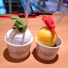 サンクゼールのジェラート〜♬ ダブルなんだけど、下が見えてない^^; *バニラ&ピスタチオに抹茶のせ *マンゴー&チョコにストロベリーのせ