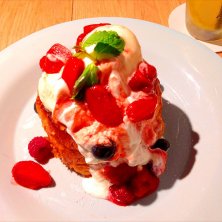 吉祥寺に新しく出来たタルタートというカフェのフレンチトーストです。アイスとベリーソースたっぷりでうま〜(^ω^)