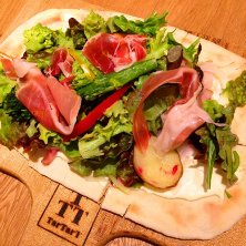 ランチは野菜と生ハムのピザでした