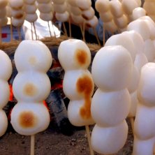 登る途中で三福だんご!下から裕福、幸福、大福なんだって。もう足がプルプルです…。