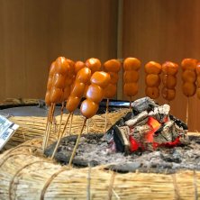 炭火で焼いて、甘味噌のタレでいただきます。外はパリッと中はもっちりでうまうまでした♡