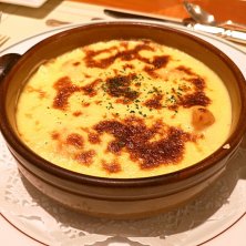 ホテル・ニューグランド発祥の料理を食べに ◎シーフードドリア 能書き(体調を崩した顧客の『何かのど越しの良いものを…』と言うリクエストに、初代総料理長サリー・ワイルが即興で創作した料理。バターライスの上に海老のクリーム煮を乗せ、グラタンソースにチーズをかけてオーブンで焼いたこの料理はホテルの伝統に成った) このドリアは、巷の品とはかなり違います 街でドリア食べてフレンチだと思ったことは無いですが、これは間違い無くフランス料理 グラタンソースがエスコフィエ系フレンチのソースの為かと?