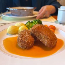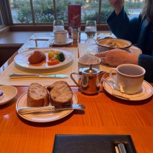 妹は昨日と同じシーフードドリア。 僕はクラブミートコロッケ トマトソース。 これも美味しい♪ ステーキピラフも美味しそうでした。 ジョギングの人 ワンコと散歩中の人 赤いバスを待ってる人などなど.... 真向かいの山下公園や通りを眺めながら。 暮れから長々と連投、 付き合って頂き有難うございました。