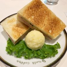 いつぞやのイノダ横浜。懐かしの京都の雰囲気を感じつつ。。初めてのハムトーストなど。カリッとベストな塩梅のトーストの裏にマヨとマスタードが効いた上品、しかししっかり味のハムサンド。美味しい。しかし足りません。クラブハウスにすべきだったか?しかし2000円超えですぜって😅 周囲の声に耳を澄ますと、、出会い系なデートとかですか?複数そういう感じのカップルが。ちと驚きました。