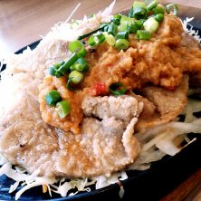 お昼は、豚ロースピリ辛味噌鉄板焼。 このお店、付け合わせに小さなブロッコリーくらいしか付いてこないし、野菜を食べようと思ったらミニサラダをつけるくらいしかできなかったんで、最初から山盛りキャベツが添えられてるこのメニューが増えたのは嬉しいなー(*^^*)