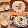 昨日の結婚式のお料理(一部)。和洋折衷の料理でした。京都らしいお上品な味付けでございました。 ・造り(マグロ、イカ、アワビ酒蒸し、湯葉、鯛) ・甘鯛のポアレ 菊菜と三つ葉のグリーンソース雲丹添え ・牛サーロインス肉と温野菜 山葵風味のナチュラルソース ・白味噌仕立て 袱紗豆腐 結び真丈 青菜 ・紅白おこわ カラスミ添え