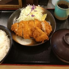 ロースカツ唐揚げ定食。朝からへビーだぜ・・・!