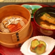 今日の宴は感動的な美味しさ&豪華さ!! 親子鰻の飯蒸し。 留椀はなんとポルチーニと湯葉(^w^)