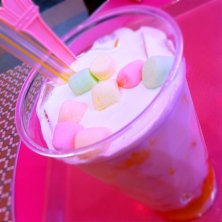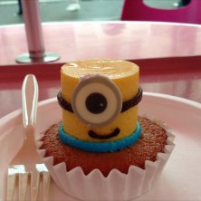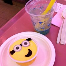 ミニオンカップケーキ マンゴー 雨と雷雲接近中によりバックドロップが運休中になりました いつ再開するかわからないからピンクカフェでスイーツタイム ミニオンって今1番流行ってるんですよね? ピンクパンサー以外のキャラにあまり興味がないおいらにはわかりませんが一押しみたいだったのでオーダーしてみました ちょっぴりマンゴーを感じることできました あっ、乗り物動き出しました バックドロップより前向きの方が待ち時間短いみたいだから前向き乗ります ごちそうさまでした