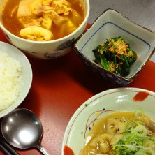 ニョッキのトマトスープとか蓮根と豚肉の味噌炒めとか。またニョッキたくさん作って冷凍しとこう。