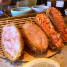 地元のトンカツ屋さんでサーモン&海老カツでお昼ごはん。ひさびさ、美味しくいただきました✨