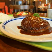今日のランチはハンバーグデミソース。 濃厚ソースにフワフワハンバーグ。 ライスがちょっとやわらかめは残念😢