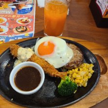 今日は月一回の検診日 病院の近所のファミレスでお昼ご飯 「ジャポネギたっぷりハンバーグと鶏から」って言うランチをいただきました。