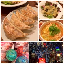 昨日の餃子祭り〜海老餃子・ニンニク餃子・バジルサラダ餃子・トムヤムクン風カレー餃子…お通しのキャベツ塩昆布以外、ずっと餃子♪ 美味しかったけど、気になった点。 餃子一個のサイズ大きめなので、延々とは食べられない。もう一つの目的・熟成肉にたどり着けなかったのが残念! 服や髪の匂い、落ちず。荷物・コートの置き場所に配慮があればなぁ。 席のすぐそばの階段がスタッフ休憩所らしく、タバコ吸っているのが見えたし臭かった。 女性に人気の餃子バルですが、改善したらもっと人気出そう。 渋谷駅前のイルミ綺麗♪