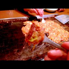 行きつけのもんじゃ焼き屋で家族忘年会。 餅、明太子、チーズ、ヘビースターラーメン入り。