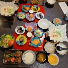 ・生姜の擂り流し ・信州そばの実とろろ 豚香煮 櫻葉包み春おこわ たけのこ煮 よもぎ味噌田楽豆富 揚げ胡麻豆富 ・川海老の唐揚げ 虹鱒の甘露煮 姫鱒と寄せ玉子 山葵チーズ ・菜の花の胡麻よごし ・淡い芽吹き色のスープ ・桜鯛 菜種焼き 春大根黄身合え ・八ヶ岳産そば粉を使った自家製蕎麦 ・黒毛和牛と信州米豚のしゃぶしゃぶ ・信州みそ漬け 出汁茶漬け ・季節の漬物 ・茅野市の名産寒天二種 櫻羊羹 黒まめ寒天 2023/02/11 夕食